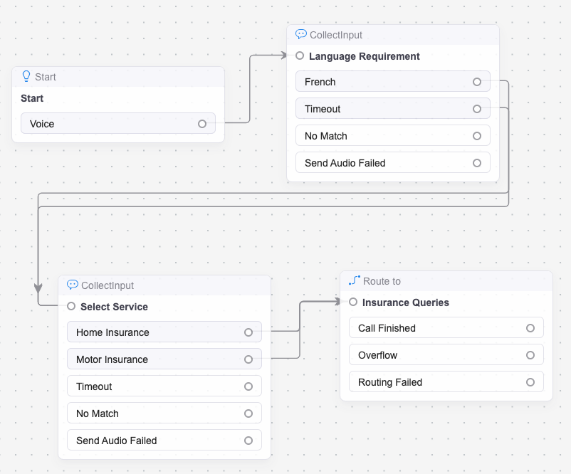 Once the agents have been allocated the appropriate skills, we need a way to identify the skills required of the agent in order to service an incoming consumer. There are several ways to do this, but for this use case we will use a simple example where skills will be determined based on the choices made by the caller inside the flow. In other words, if the caller chooses the option for Home Insurance, then we need an agent who is certified to speak about Home Insurance products.
