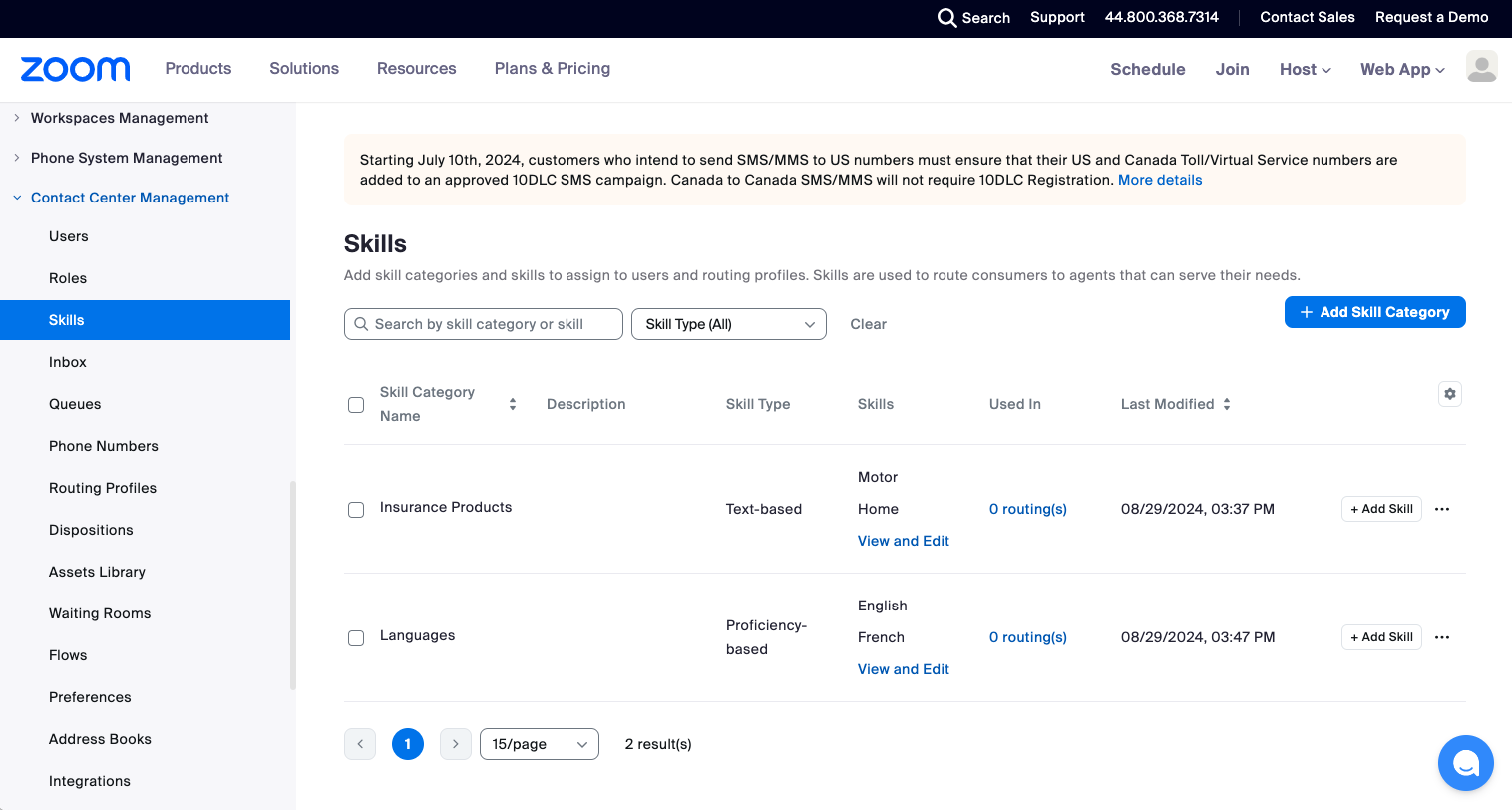 Based on these profiles, the appropriate skills and proficiencies must be defined. From within the Zoom Admin UI the Admin will need to perform the following steps: