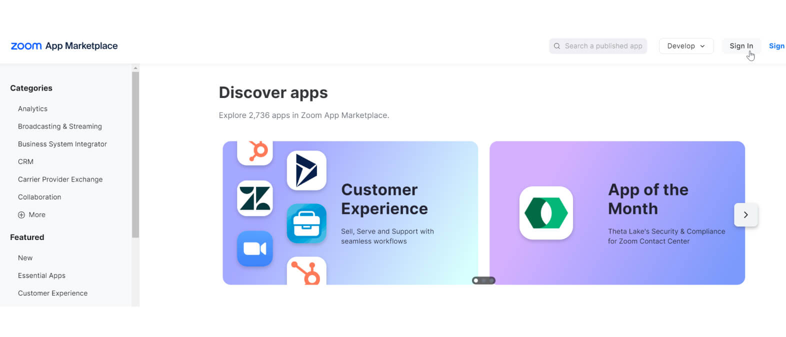 Zoom Marketplace access: Admin Access to Zoom App Marketplace.
