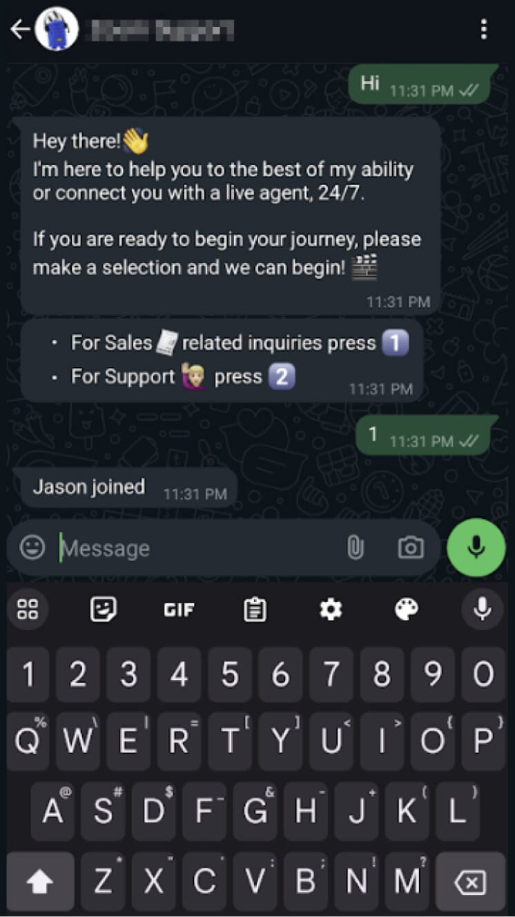 Flexible Channel Upgrades: Agents can seamlessly transition a WhatsApp conversation to a voice or video call, facilitating a smooth shift to a different channel without requiring any additional licenses.