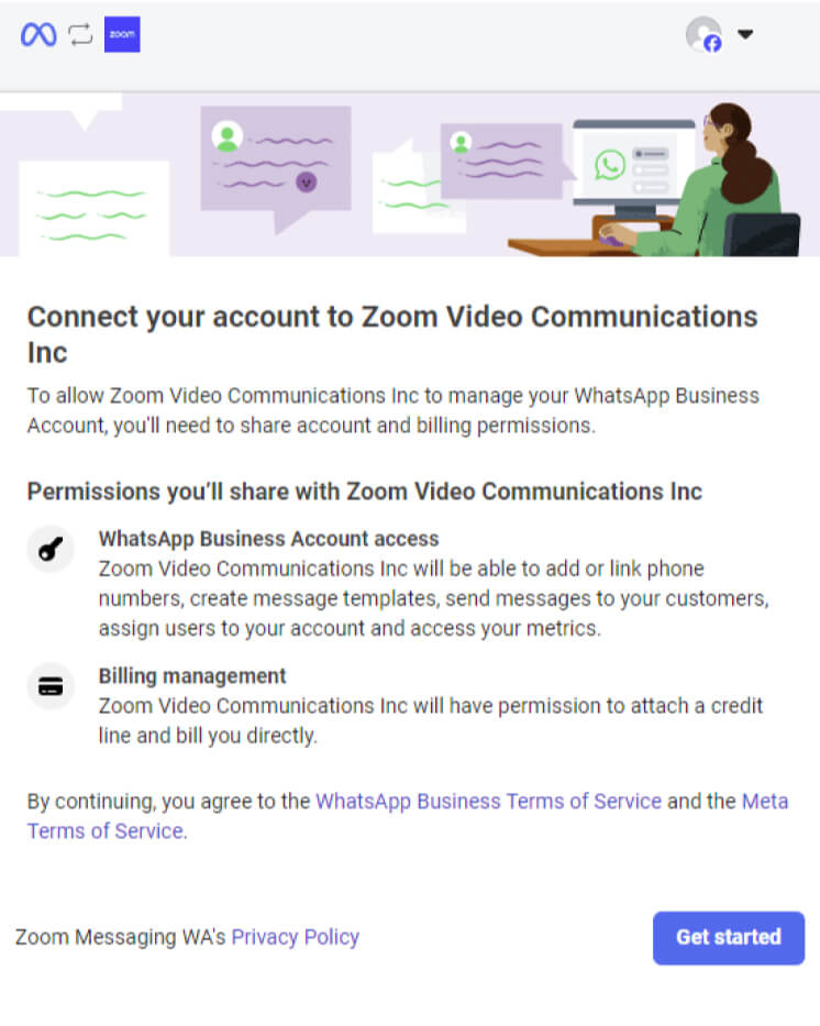When sharing a WhatsApp Business Account (WABA) with a Business Service Provider (BSP) like Zoom, remember that only one WABA can link to one BSP at a time, so you can either create a new WABA for Zoom or remove the existing payment method from your current WABA to proceed