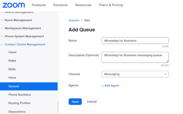 License: Social Messaging channels, including WhatsApp, require a Zoom Contact Center Premium or Elite.