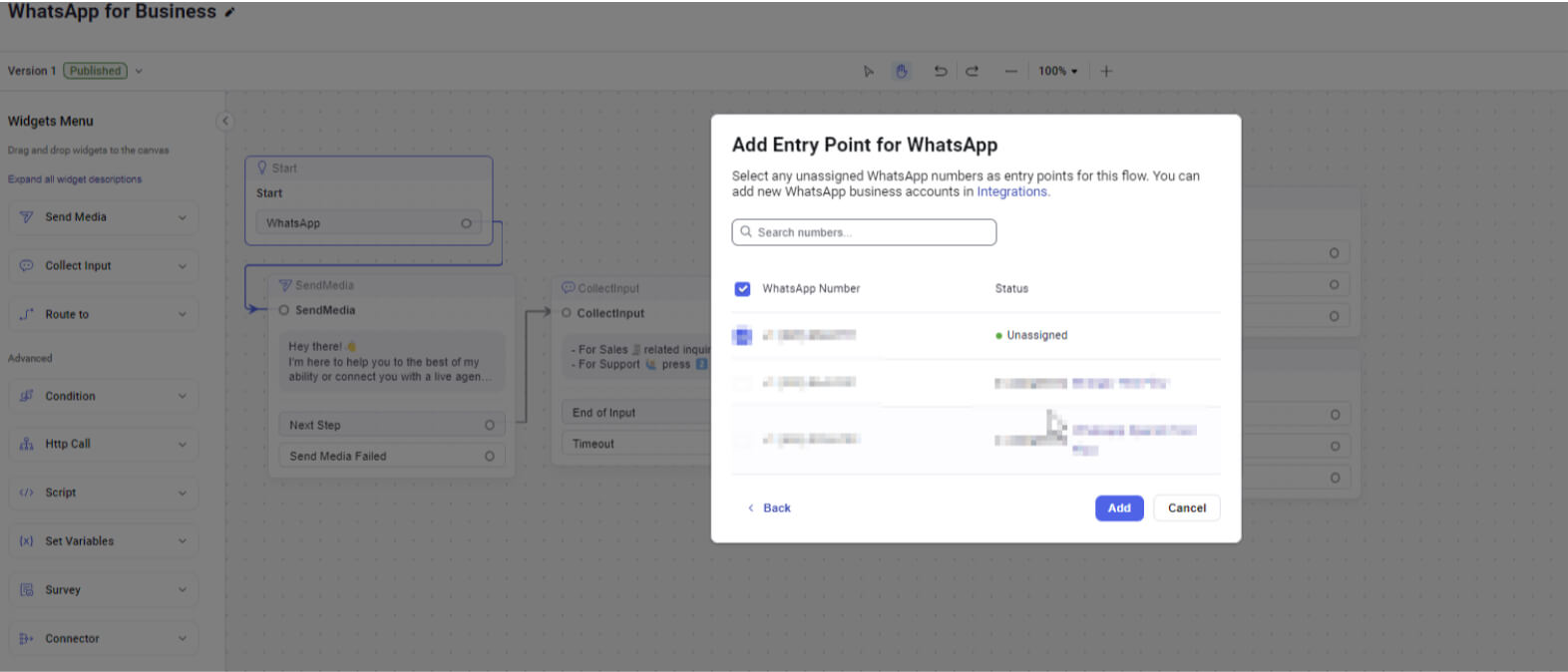 Associating your WhatsApp-enabled Phone Number to your new Flow