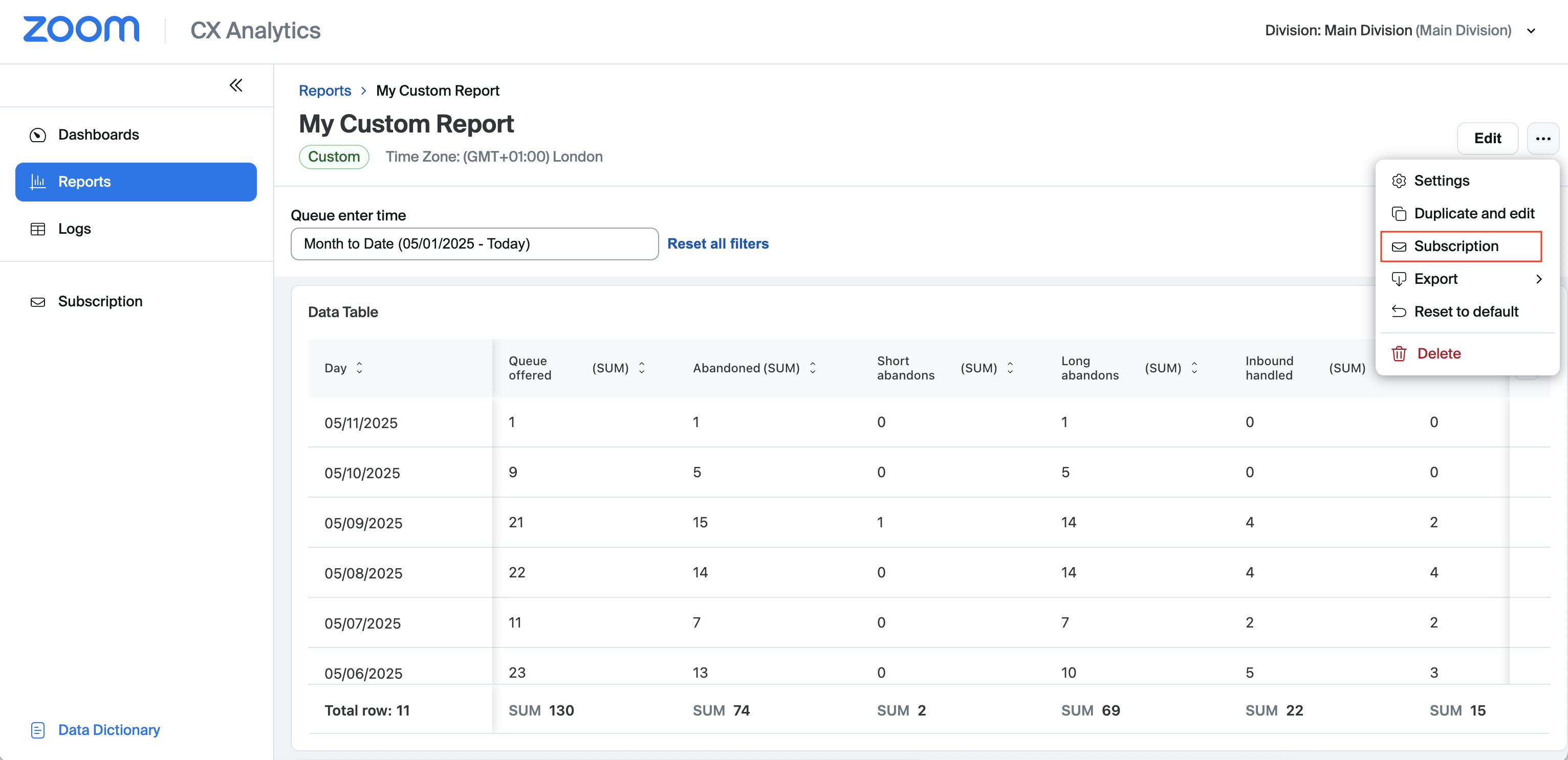 * [Subscribing to Zoom Contact Center CX Analytics reports](https://support.zoom.com/hc/en/article?id=zm_kb\&sysparm_article=KB0080786\&ampDeviceId=178f00fc-724f-4a48-8bc8-2e79500f8f07\&ampSessionId=1748445561066)