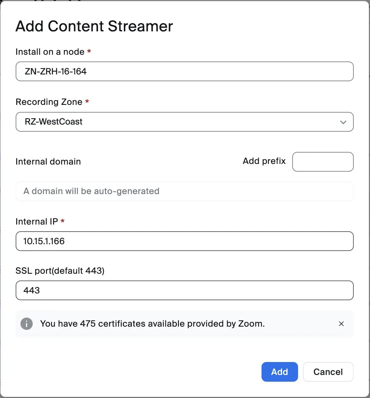 6. Définissez l’ **adresse IP principale** du Zoom Node.