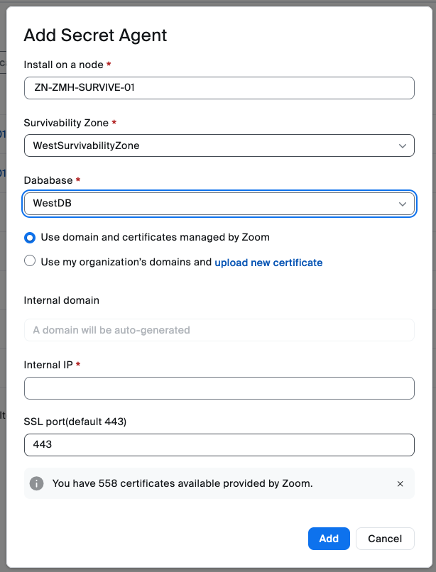 4. Şunlardan birini Seç **ikincil IP adresleri** Zoom Node’a atanmış.