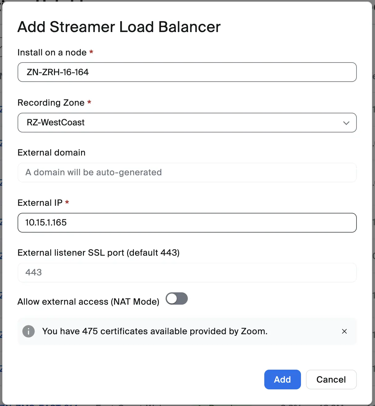 Content Streamer ve Streamer Load Balancer, tek bir Zoom Node VM üzerinde birlikte kurulabilir.