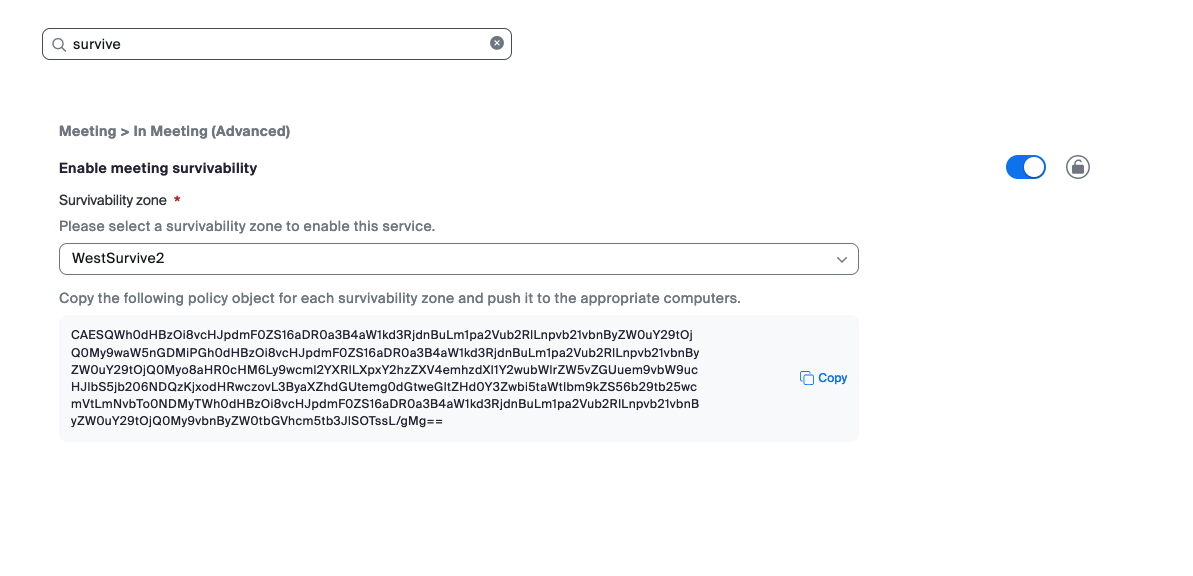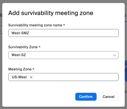 En az bir (1) Kurtarılabilirlik Bölgesi, Zoom Workplace uygulamasını kurtarılabilirlik kaynaklarına yönlendirmelidir. Bir Kurtarılabilirlik Bölgesi birden fazla Hibrit Toplantı Bölgesine hizmet verebilir.