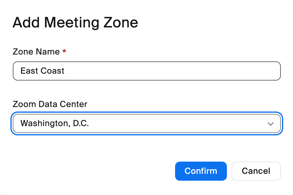 2. Şuna tıklayın: **Zoom Veri Merkezi** açılır listesinden ilgili veri merkezi öğesini Seç.