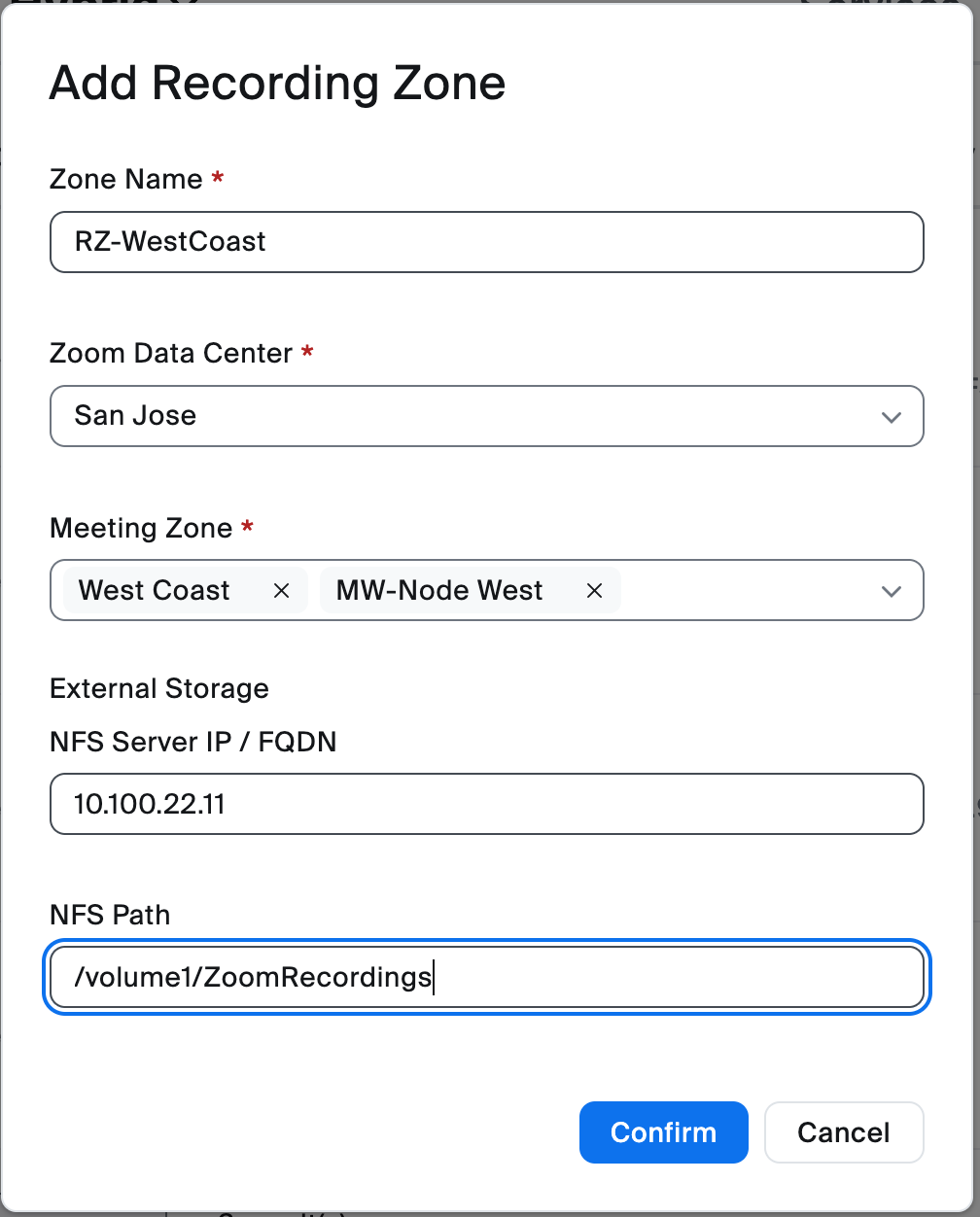 NFS sunucunuz, paylaşım için okuma ve yazma Access izni verecek şekilde yapılandırılmalıdır. NFS ile bu, genellikle bağlanmasına İzin Verilen Zoom Node IP'leri için uygun hakların yapılandırılması anlamına gelir.