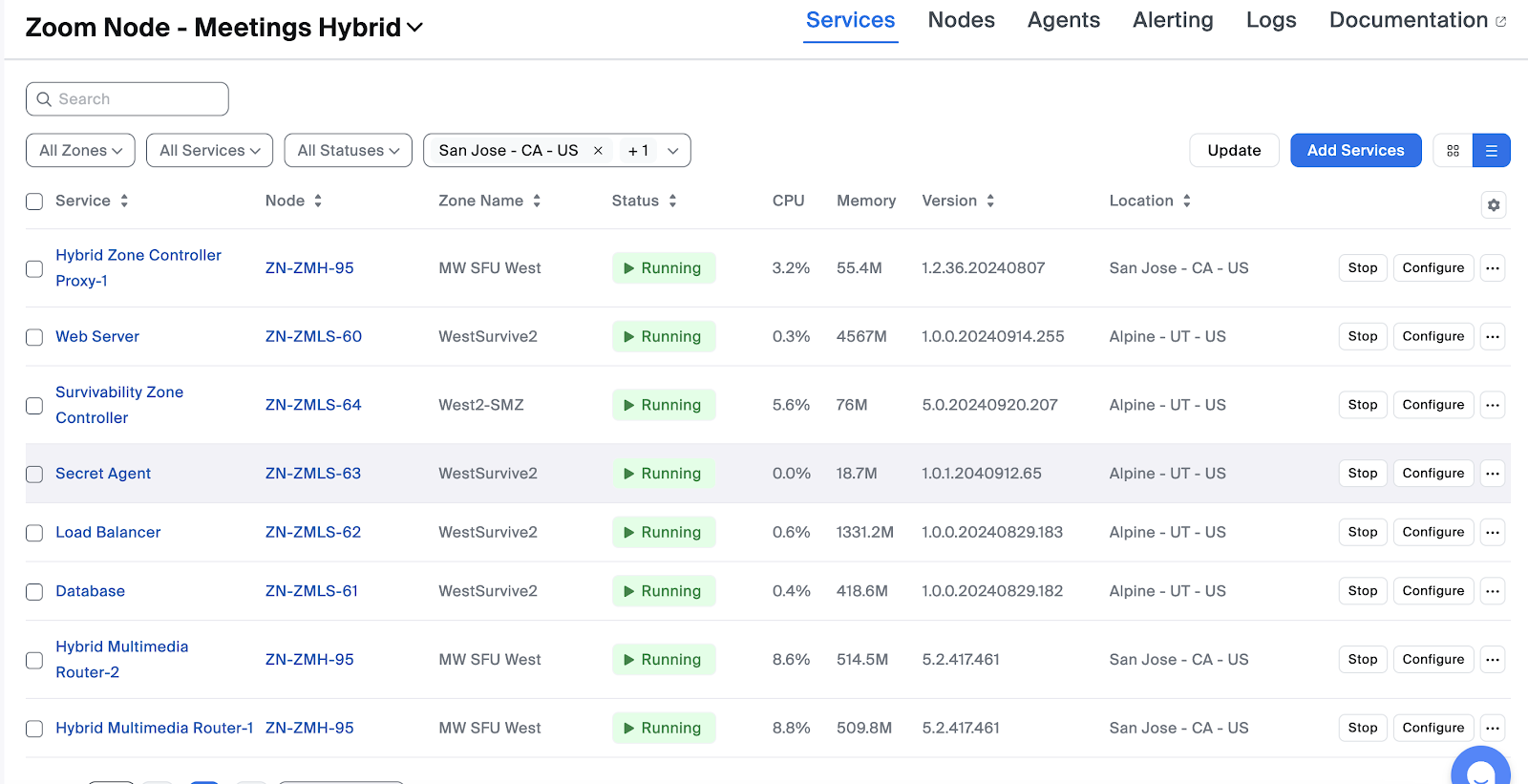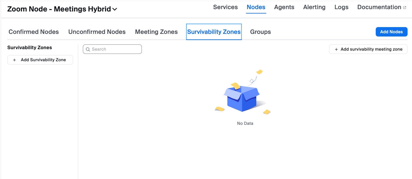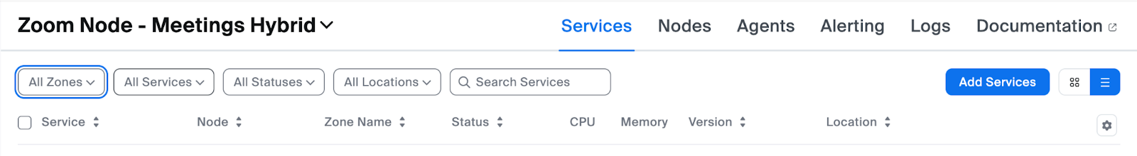 1. Şuna tıklayın: **Hizmetler** Zoom Node şeridindeki menü seçeneği hizmet düzeyi görünümüne gönderilmek üzere.