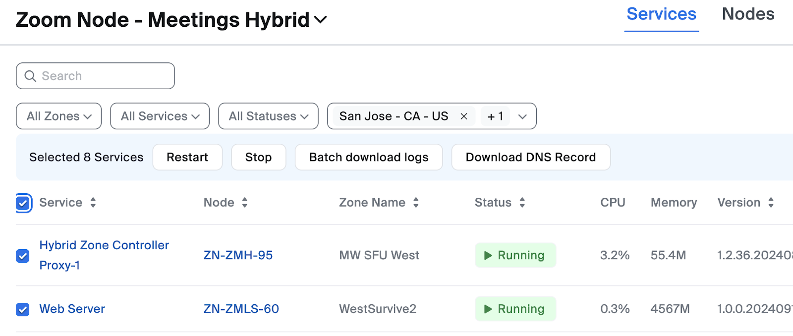 1. Yeni dağıttığınız Hybrid ZC Proxy hizmetinin bulunduğu Zoom Node sunucusunu Seçin.