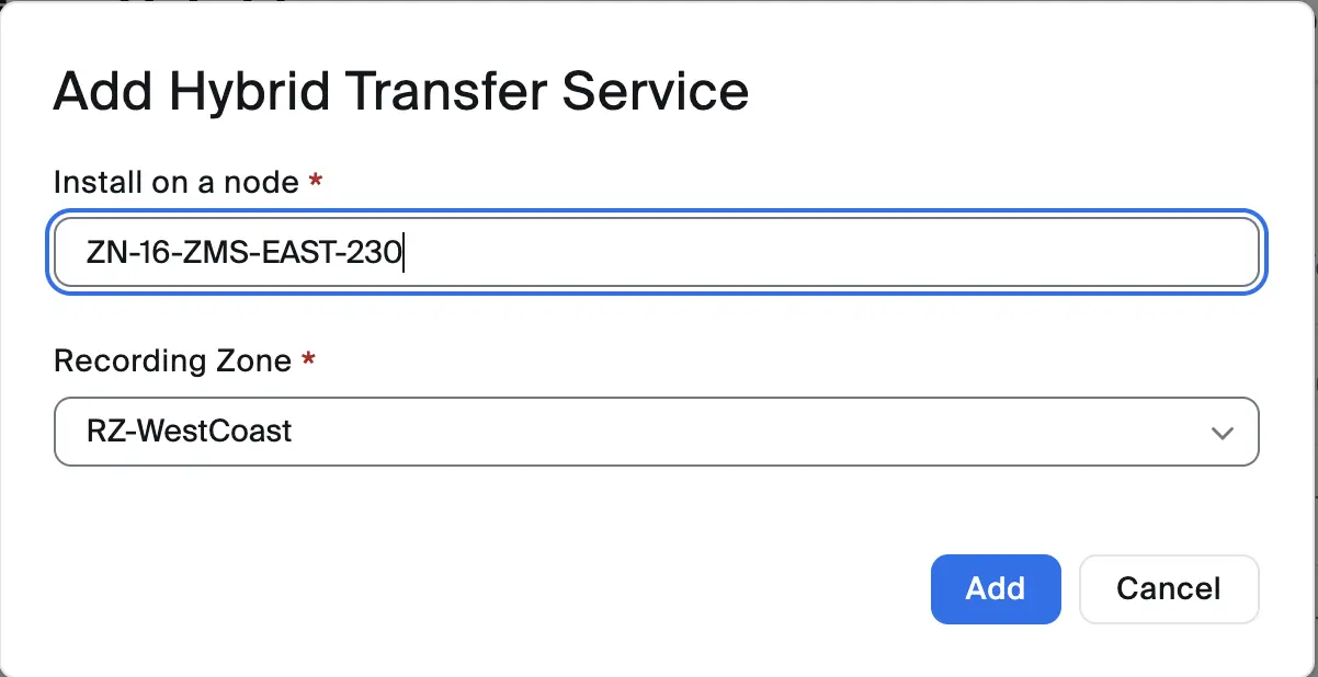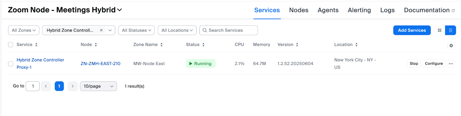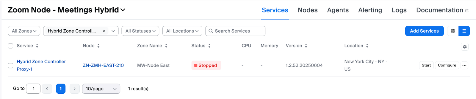 4. Önceki bölümde dağıttığınız Zoom Node sunucusunu yüklemek için Seç **Hybrid ZC Proxy** hizmeti.