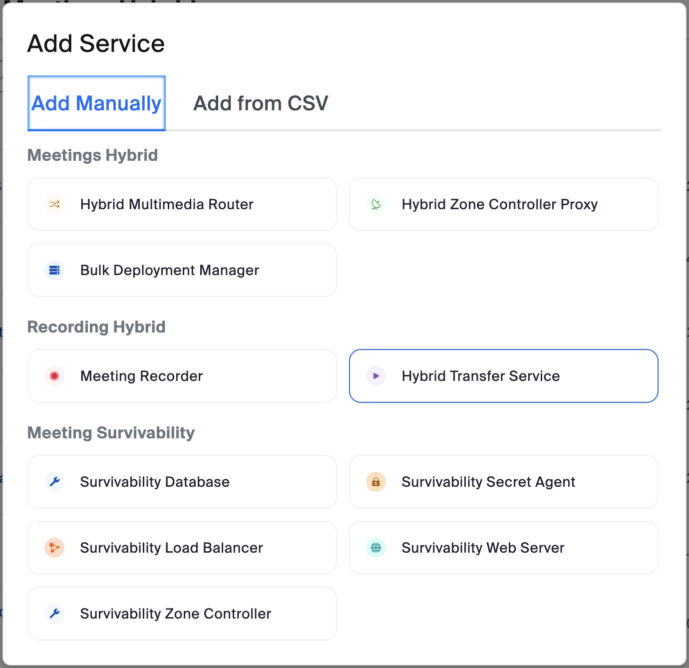 * Hybrid Mod toplantılarını kaydetmek için şunu dağıtın: **Hibrit Aktarım Hizmeti**.