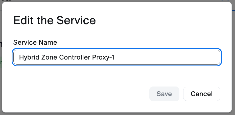 (İsteğe Bağlı) Yeni Zone Controller Proxy’nin özniteliklerini görmek için Hybrid Zone Controller Proxy adına tıklayın. Ardından, **Düzenle** düğmesine ekranın sağ tarafında tıklayarak **Hizmet Adı**. Herhangi bir değişiklik yaptıktan sonra, tıklayın **Kaydet** adı Değiştir.