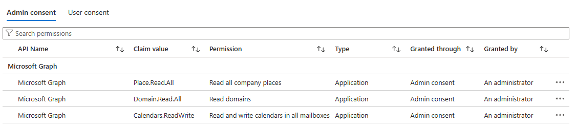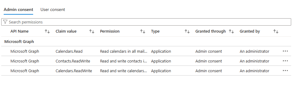 Bir yönetici, Entra ID portalında uygulamanın izinlerini inceleyerek tüm uygulama API izinlerinin verildiğini doğrulayabilir.