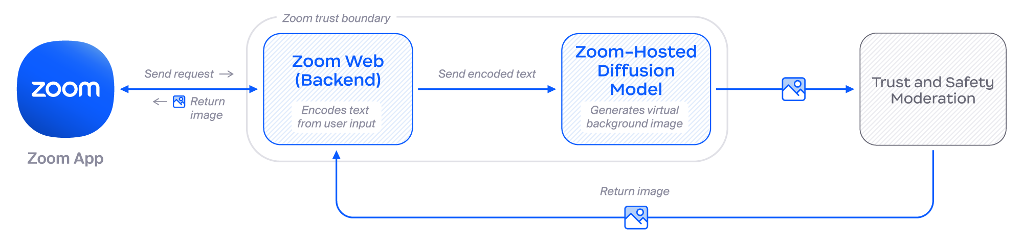 Sơ đồ sau đây minh họa cách Zoom tạo nền ảo với AI Companion.