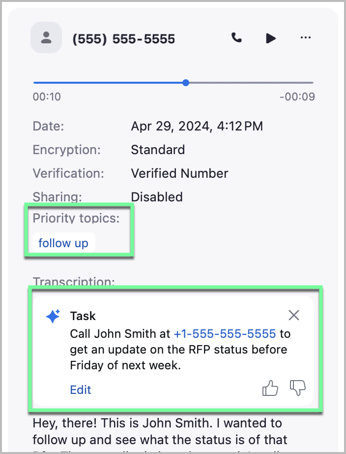 This feature is particularly useful for professionals who rely on voicemail for client communications, such as sales representatives, customer support teams, and executives. By streamlining task management, it helps users respond efficiently and stay productive.