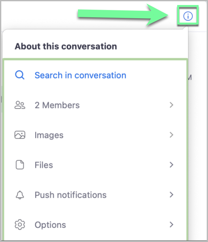 2. In the top-right corner of the SMS conversation, click the info button.