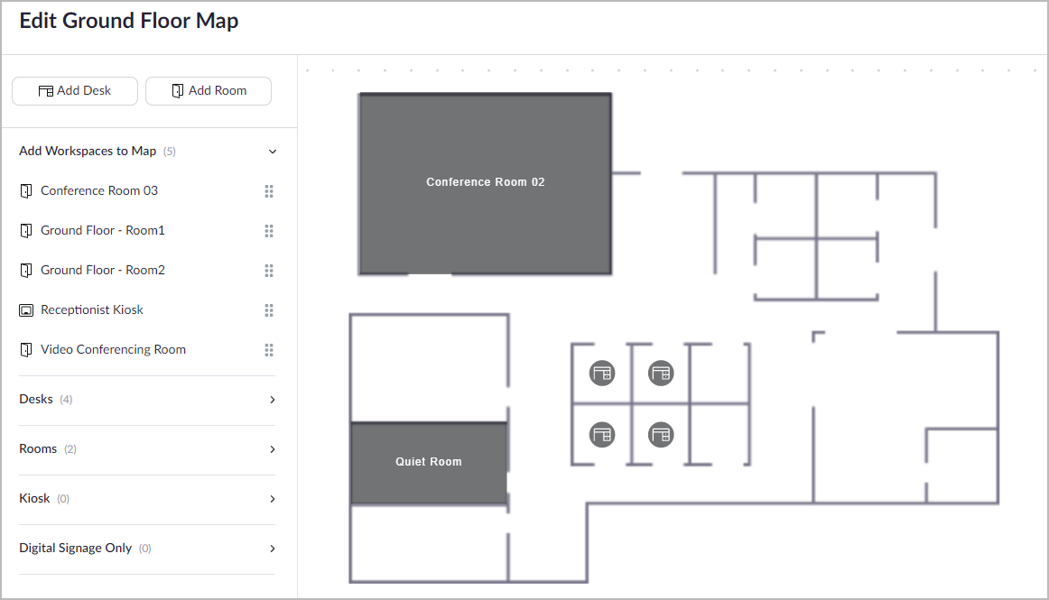 9. Repeat steps 5-8 as necessary to apply all workspaces, Kiosks, and Digital Signage to the floor plan.